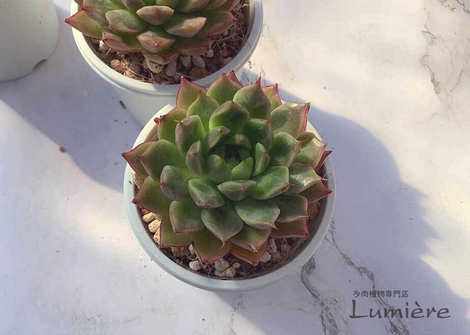 1つのポットに2つの苗が植えてあります。(縦に伸びるタイプの多肉植物に多いタイプです。)